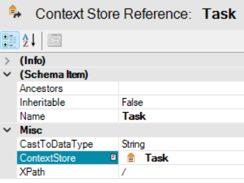 Context stores take care of all data used across your workflow, and you need to create at least one. A Context store can be based on XML and linked to a specific Data Structure, which defines its structural content, or be a simple value defined by the data type (e.g. integer, date, string).