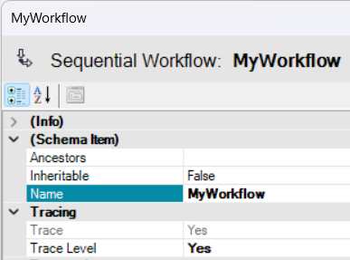Name your workflow and optionally change the Trace Level to Yes. This will allow you to debug your workflow later using the Trace Tool.