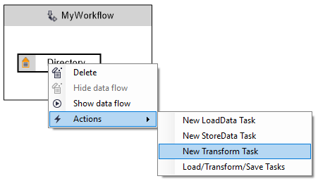 Create a new (Task) Service Method Call using the DataTransformationService and its Transform method: