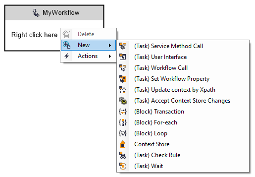 To create a new Context store, right-click on your workflow (either the box in the diagram editor or the workflow name in the Model Browser tree) and select new Context Store: