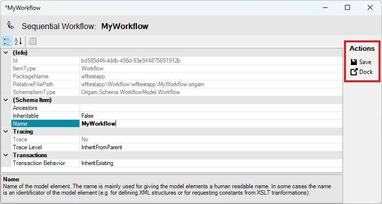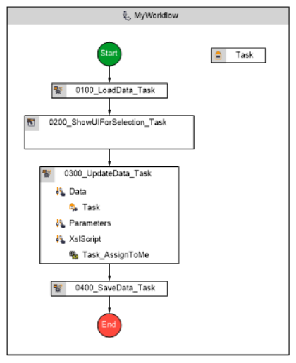 The application model in ORIGAM is physically stored in XML files. The main reason for this is that storing the model in files makes versioning and collaboration much easier than using a relational database. When modeling business logic, such as sequential workflows in this case, XML is also used in the background. This allows us to use XSL transformations for working with data in workflows. In addition, XPath is used to address XML elements entering the transformations. This is why familiarity with these languages is required when modeling business logic in ORIGAM.