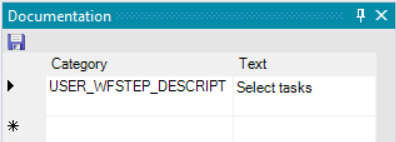 Category, selectUSER_WFSTEP_DESCRIPTION - In the Text field, enter for example “Select tasks” — this is what users will see in the client application