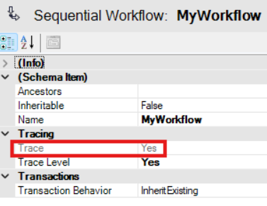 You can trace workflows that are executed directly in the Architect as well as workflows run in the client application. In both cases the tracing in the workflow properties needs to be turned on (Trace value is Yes).