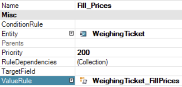 ConditionRulespecifies the condition under which this rule will be applied (see the next chapter)Entitylinks the rule to a data entityTargetFielddetermines the entity field that will be filled with the rule result — in this case, the number of remaining days; here we use a virtual field that is not saved to the databaseValueRuleis simply a reference to the rule definition