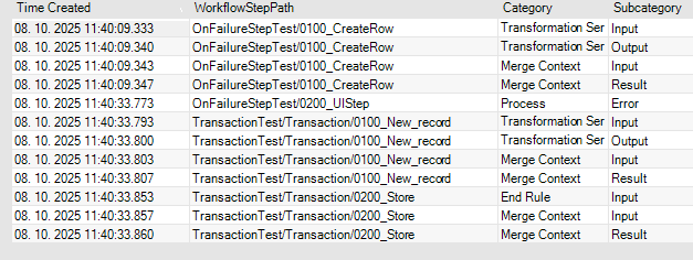 It would be useful if (Task) User Interface step would be mentioned in the trace even if there are no errors. It would also be useful in case of (Task) Workflow Call step to have first the name of the step in the caller workflow.