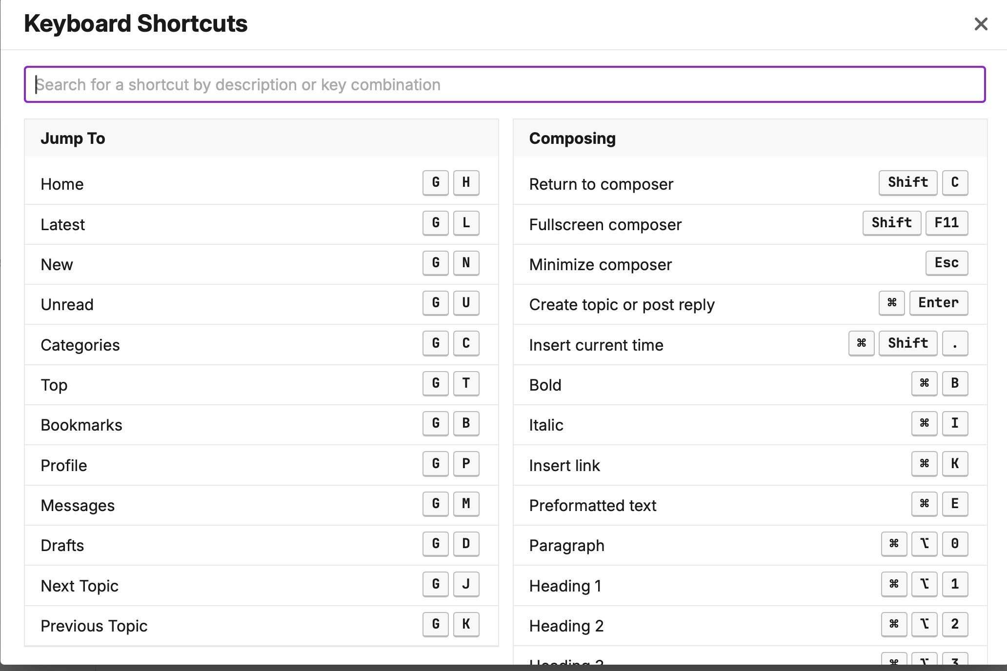I think it would be great to have a help for keyboard shortcuts in the client application. It could be placed in the avatar menu.