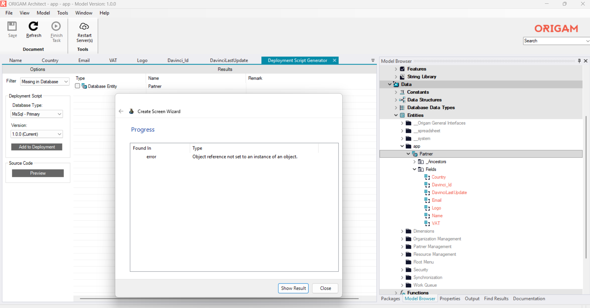 Executing activity: 00150_Database_Entity_OrigamModelVersion
