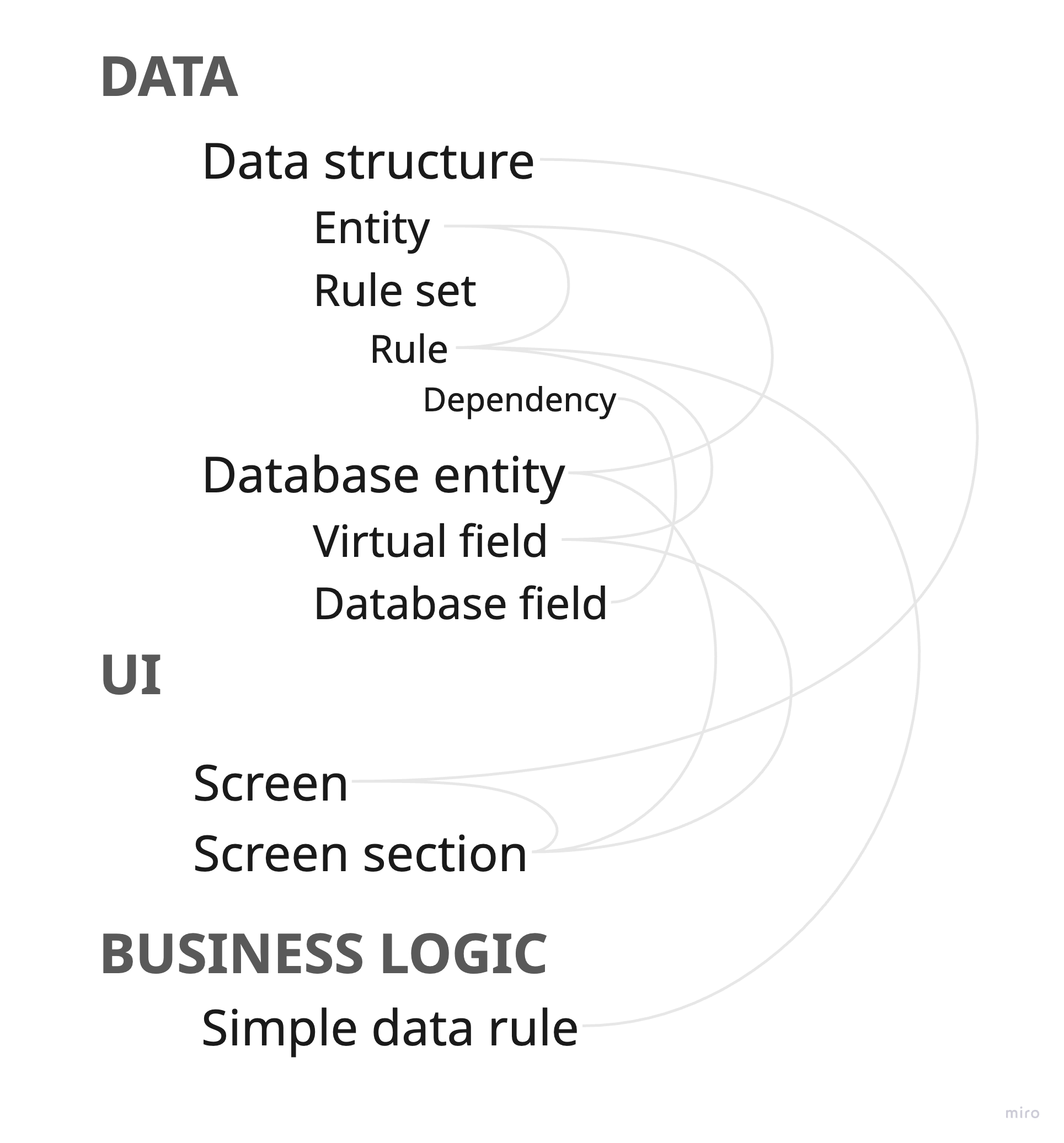 Je tam dost vazeb, ale ty jsou jen pomocné, hlavně jde o to, že člověk vidí všechny relevantní elementy v jejich hierarchii. To na začátku může pomoci, později už si to člověk bude umět mentálně “namodelovat” sám.